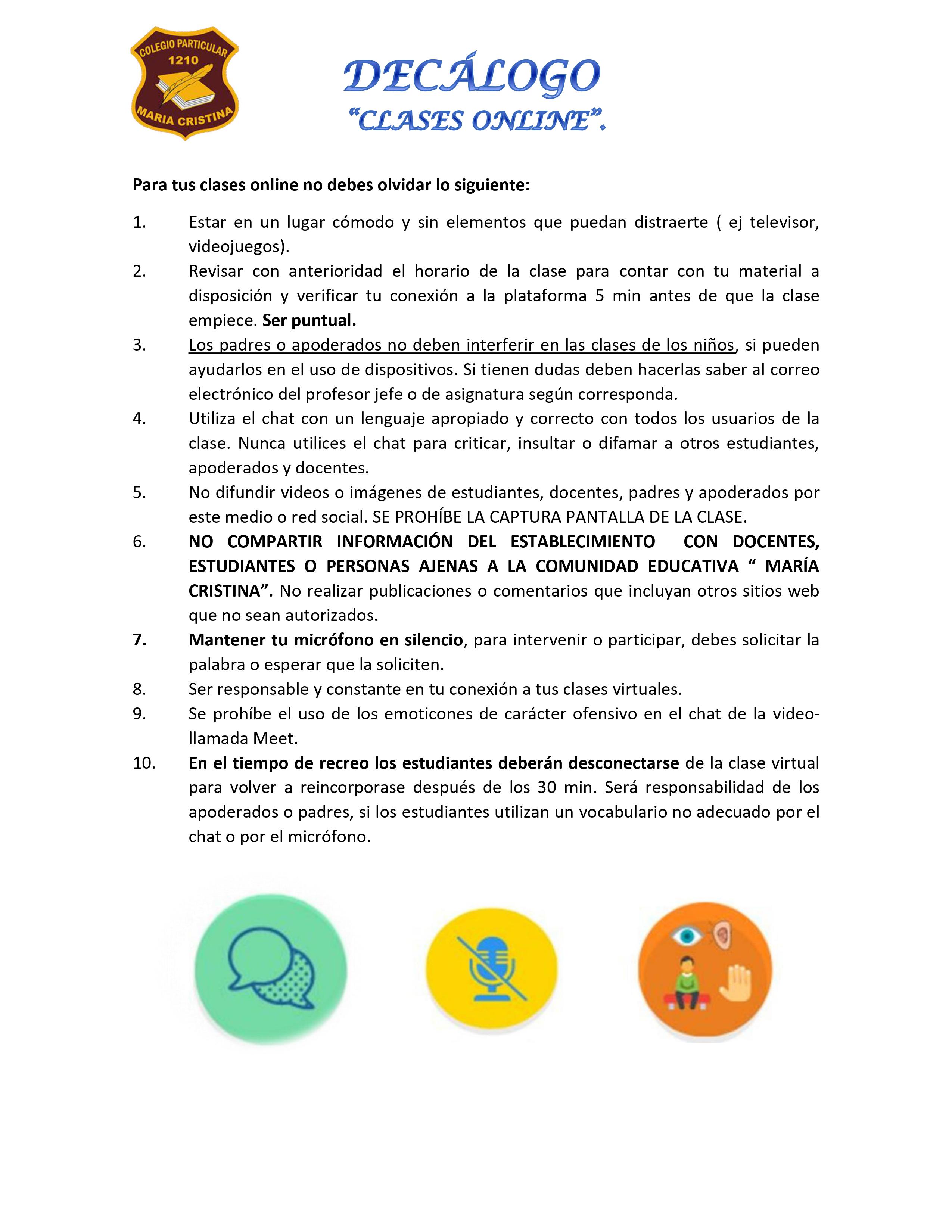 Aquí puede ver y/o descargar el Reglemento Interno y manual de Convivencia Escolar de nuestra Escuela Básica María Cristina.